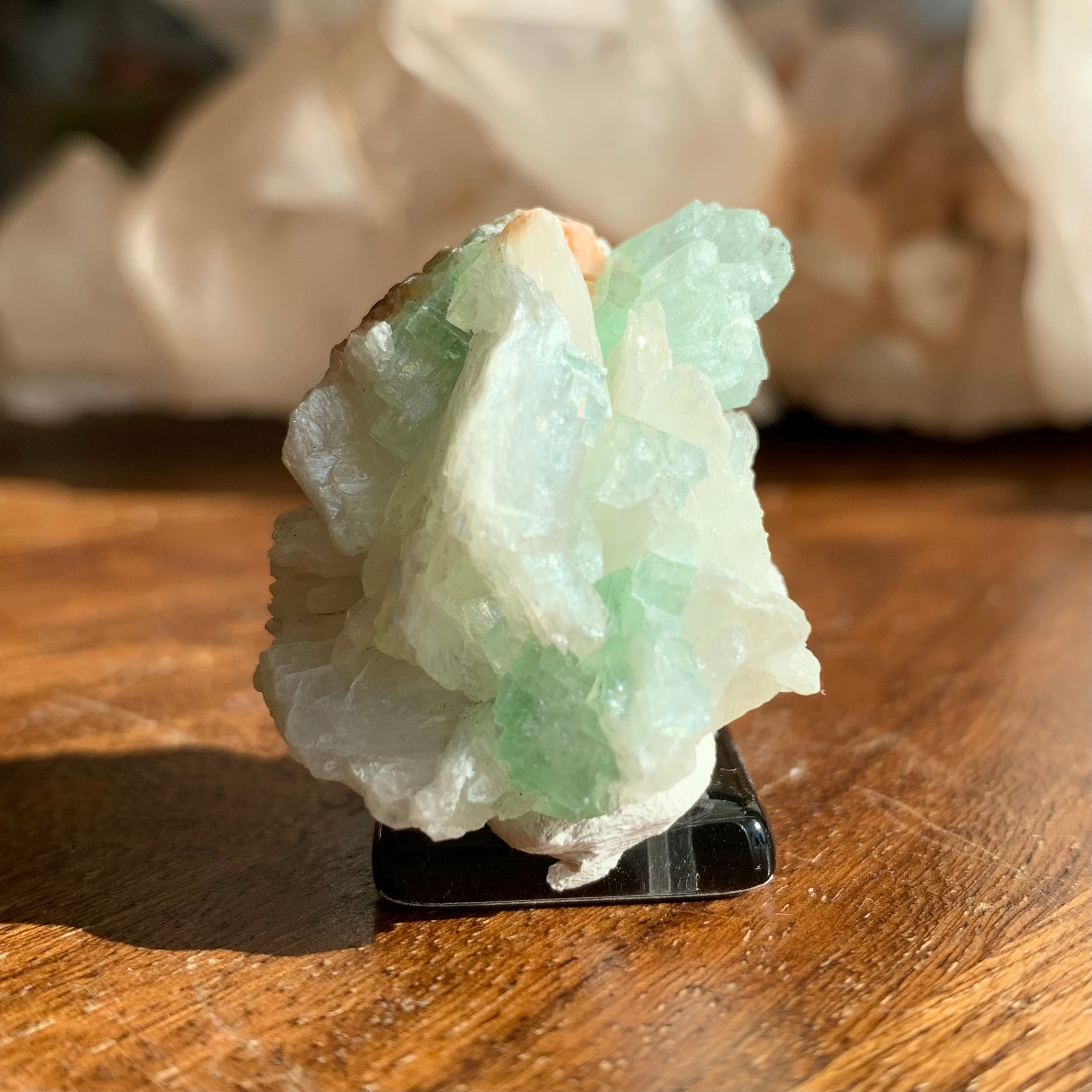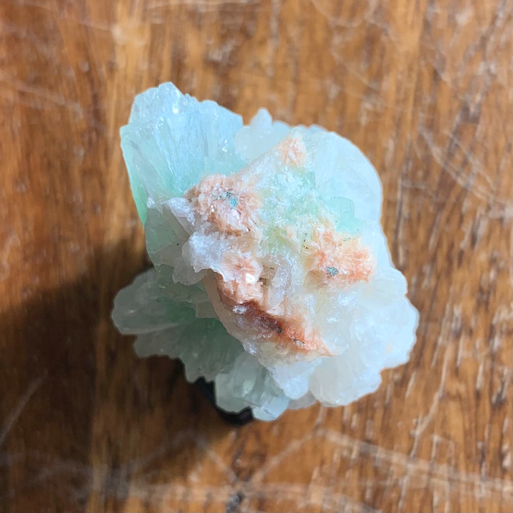 柔らかなグリーンの花が咲いたようなアポフィライトの原石が入荷しました。